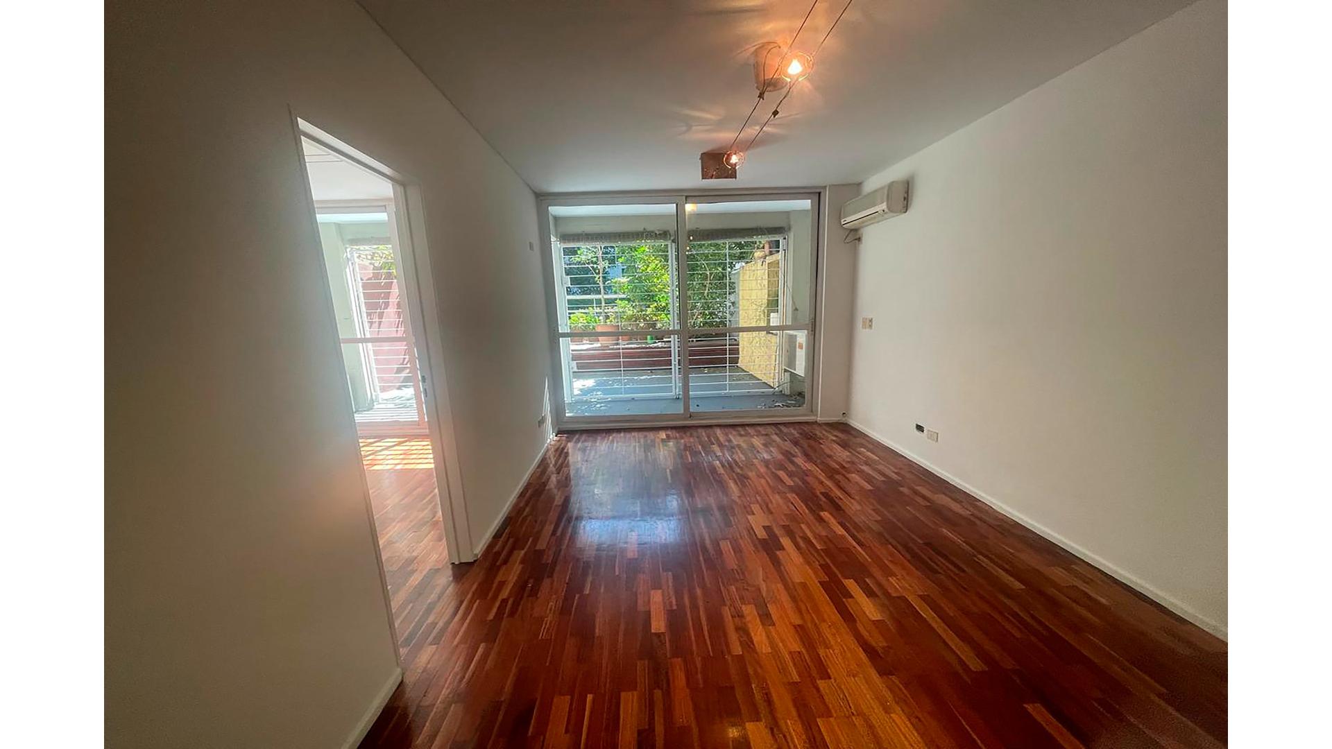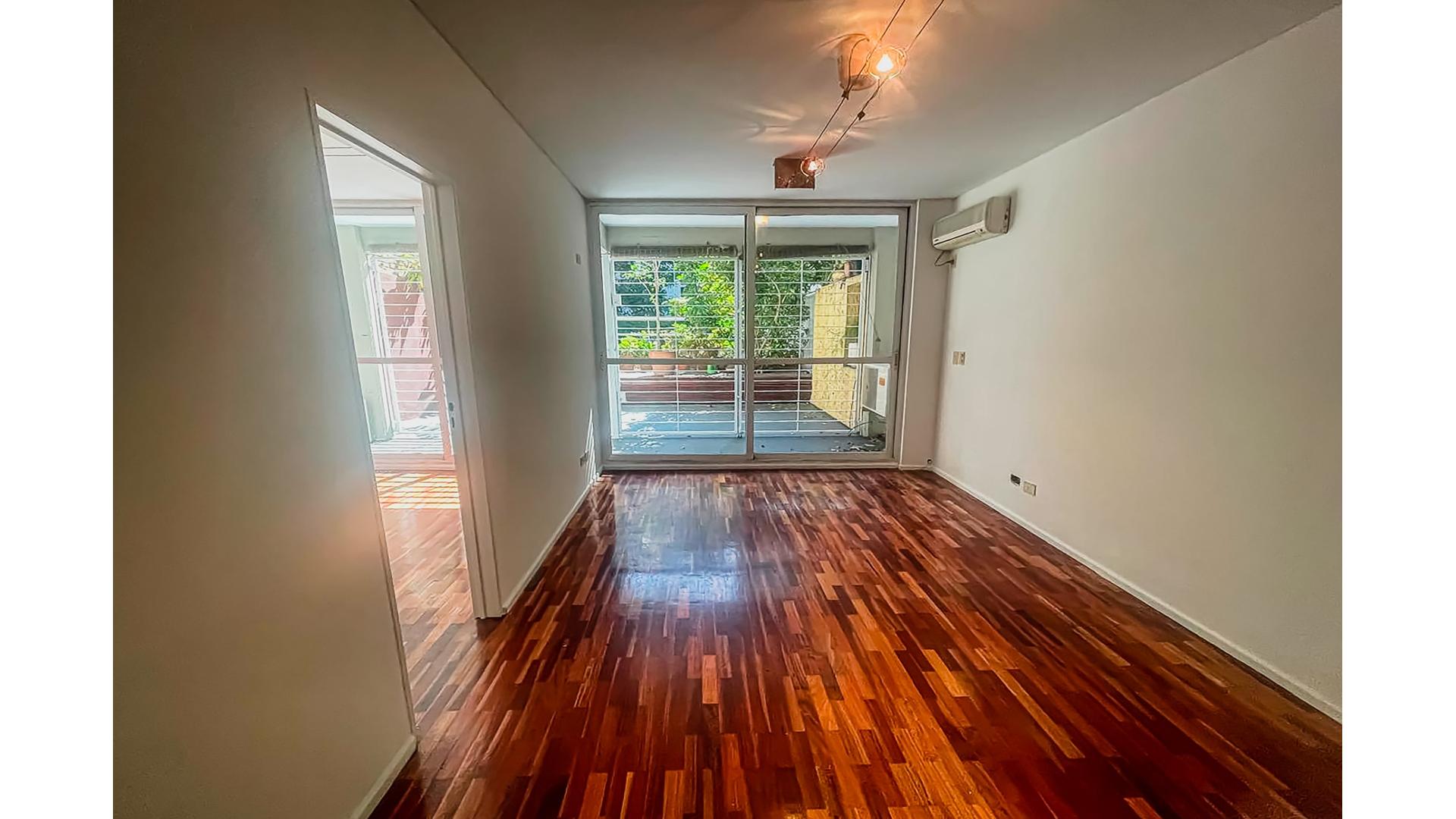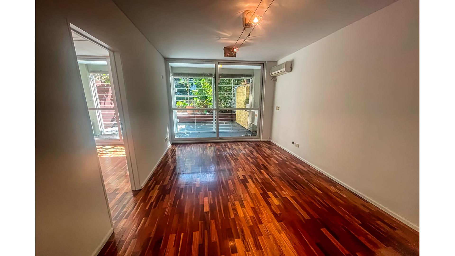 2 Ambientes , contra Frente con amplio Patio , con Cochera fija , Cocina integrada con barra pasaplatos , anafe electrico , baño completo + toilette . Pisos de Parquet.
