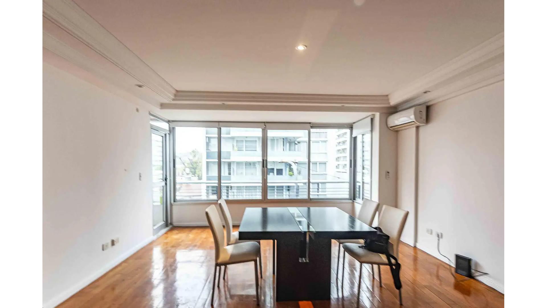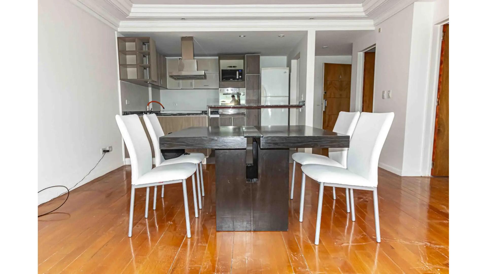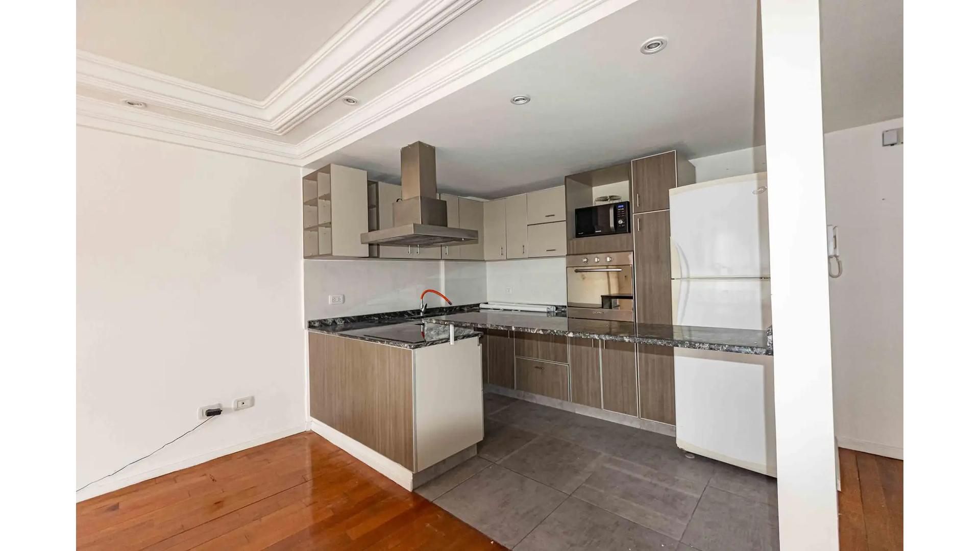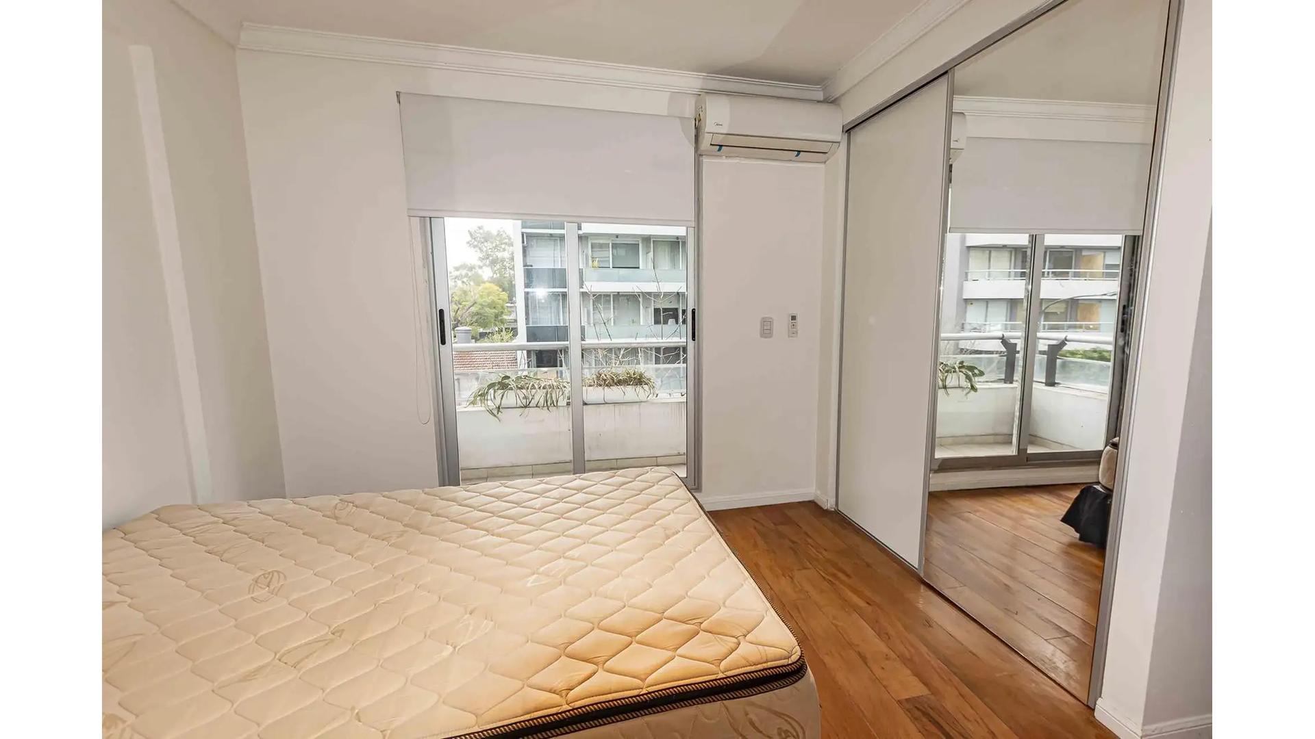 Semipiso de 2 Ambientes al frente con balcon , ambientes amplios, con mobiliario basico ( Heladera con Freezer , Mesa con 4 sillas , Cama Sommier de 2 1/2 plazas) – Aire acondicionado tipo split – Cocina americana con barra pasaplatos y buen espacio de guardado – Pisos de Parquet – Cerramientos de aluminio con doble vidrio – Baño completo en suite – Toilette.
