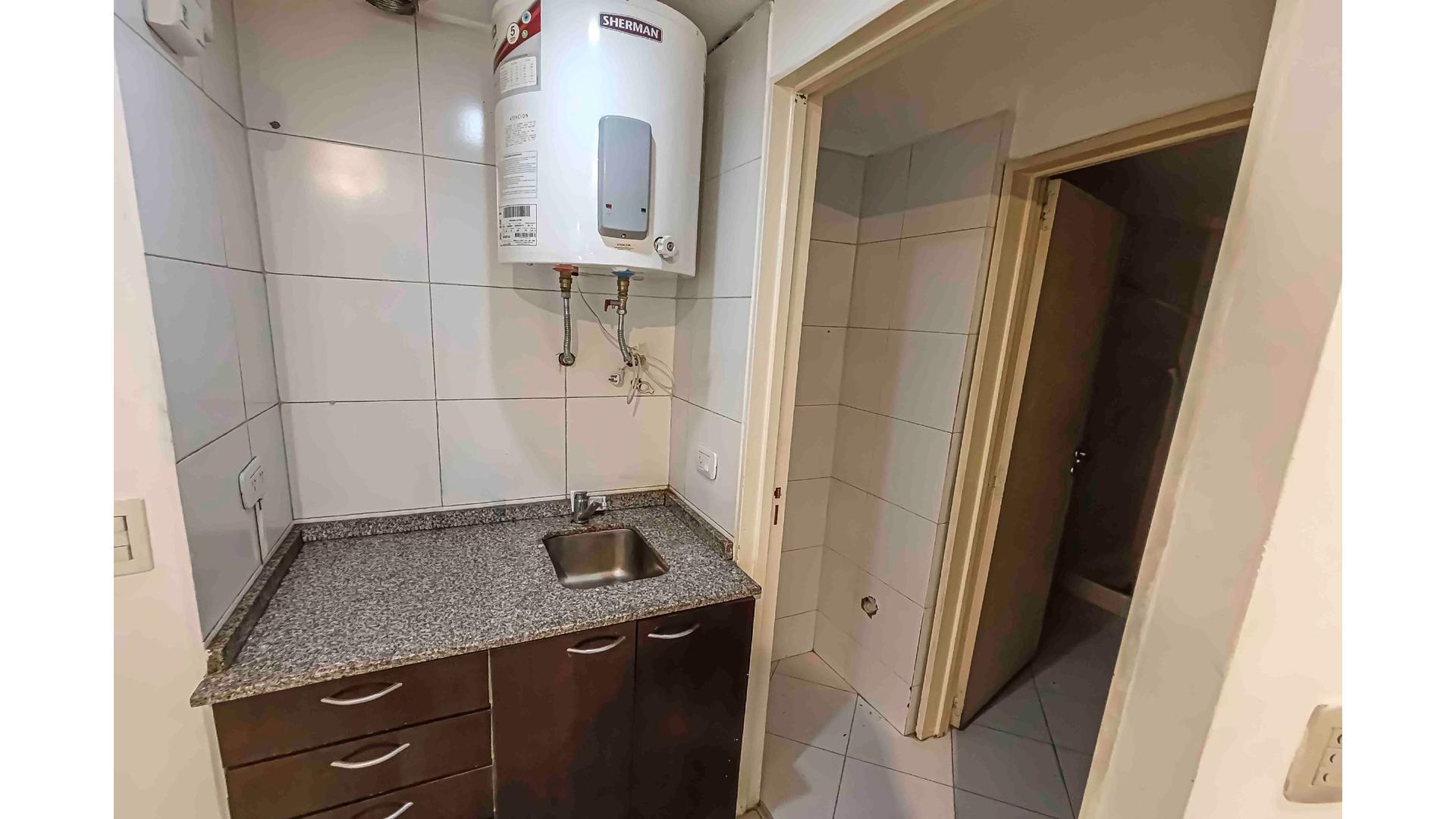 Monoambiente al frente , Luminoso , cocina integrada , baño completo con ducha , Pisos de ceramica .